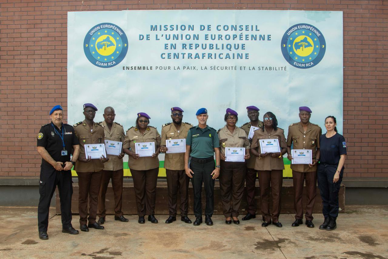 Within the framework of the National Border Management Plan, the European Union Advisory Mission in the Central African Republic, (EUAM RCA) supports the modernization of the Central African Customs Administration and the strengthening of the justice chain. During a one-week training on the digital drafting of customs reports, ten Customs Judicial Police Officers — half of them women — enhanced their ability to harmonize procedures and promote digitalization, strengthening professionalism and accountability within the service.