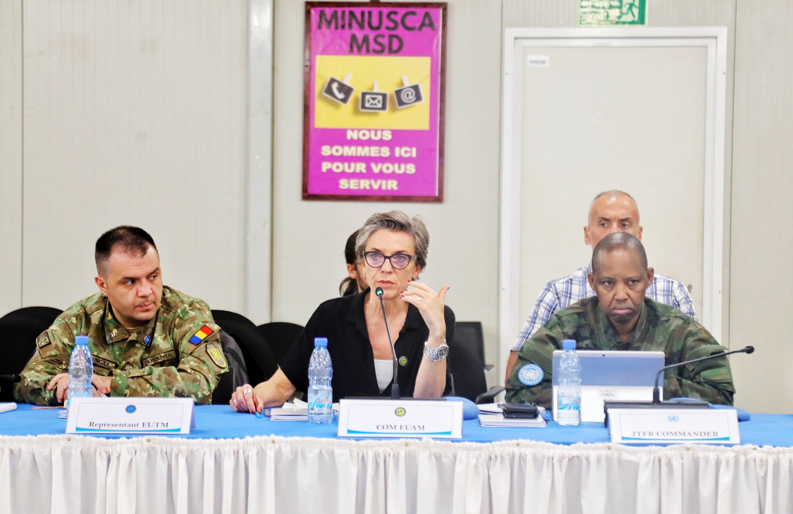 EUAM RCA, represented by its Head of Mission Gail Van Hoever, participated on 17 March 2026 in the high-level meeting of the Committee of Chiefs of Staff (Grand COCEM) held in Bangui, bringing together key national and international security actors, including representatives of FACA, the National Police, the National Gendarmerie, MINUSCA and EUTM RCA.