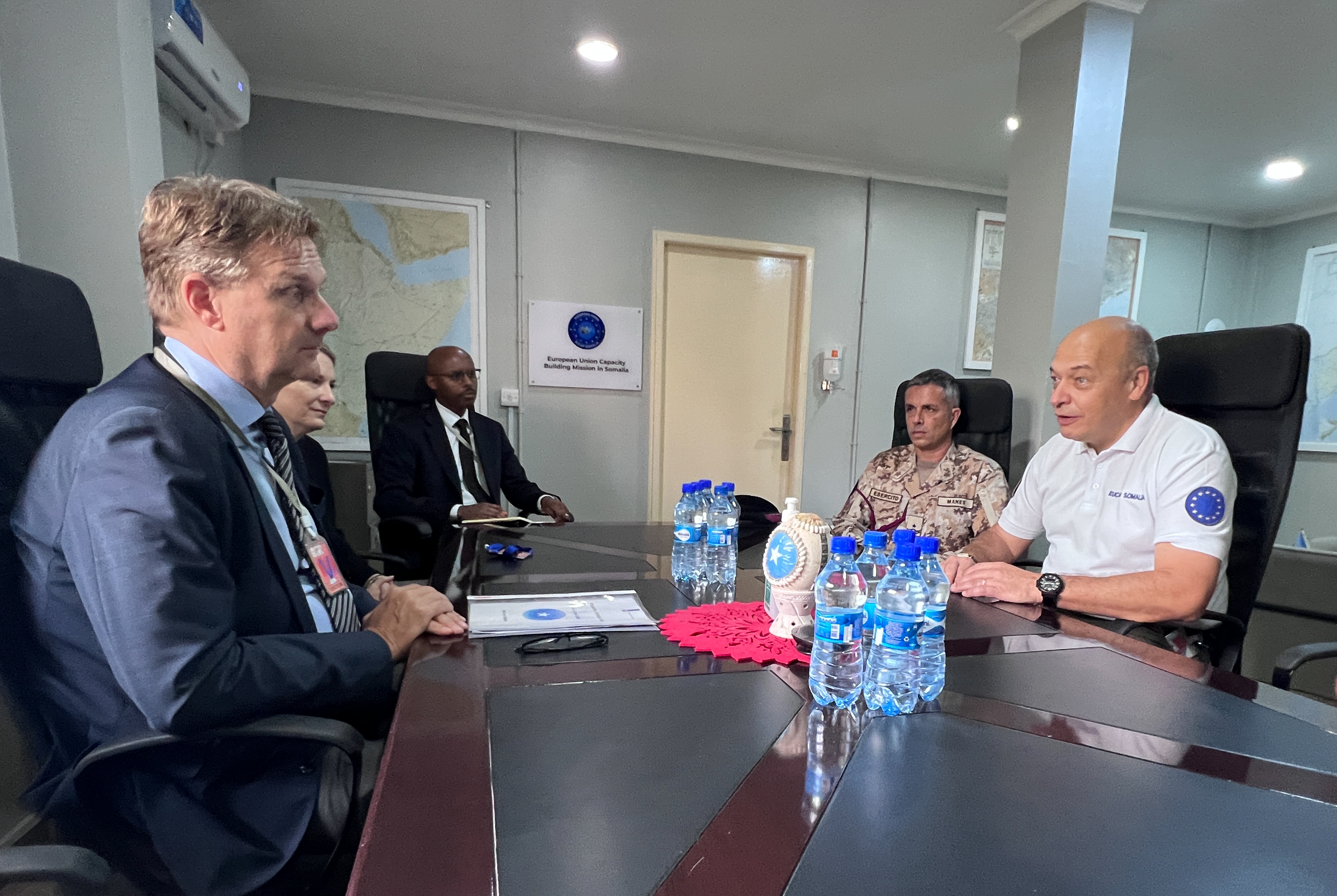 The Head of Mission of EUCAP Somalia, together with the Mission Force Commander of the European Union Training Mission in Somalia (EUTM Somalia), welcomed a delegation of the Kingdom of the Netherlands as part of their visit to the International Compound in Mogadishu. Our Head of Mission was joined by a few of our Dutch mission members, seconded by the Dutch Ministry of Foreign Affairs and the Dutch Police.