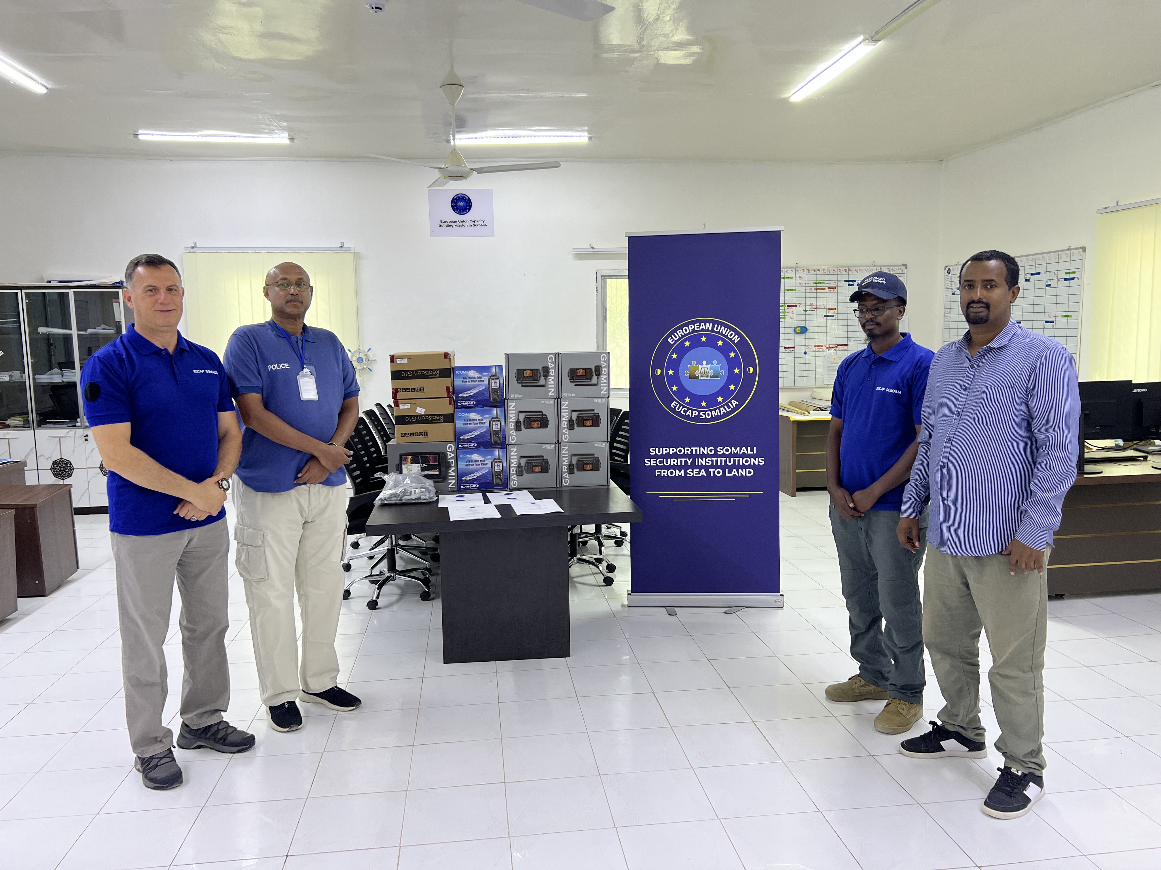 EUCAP Somalia’s Field Office in Puntland donated maritime communication equipment and fingerprint scanners to the Puntland State Police, aimed at strengthening the capacity of the Bossaso Port Maritime Police Unit and the Financial Guard Unit.