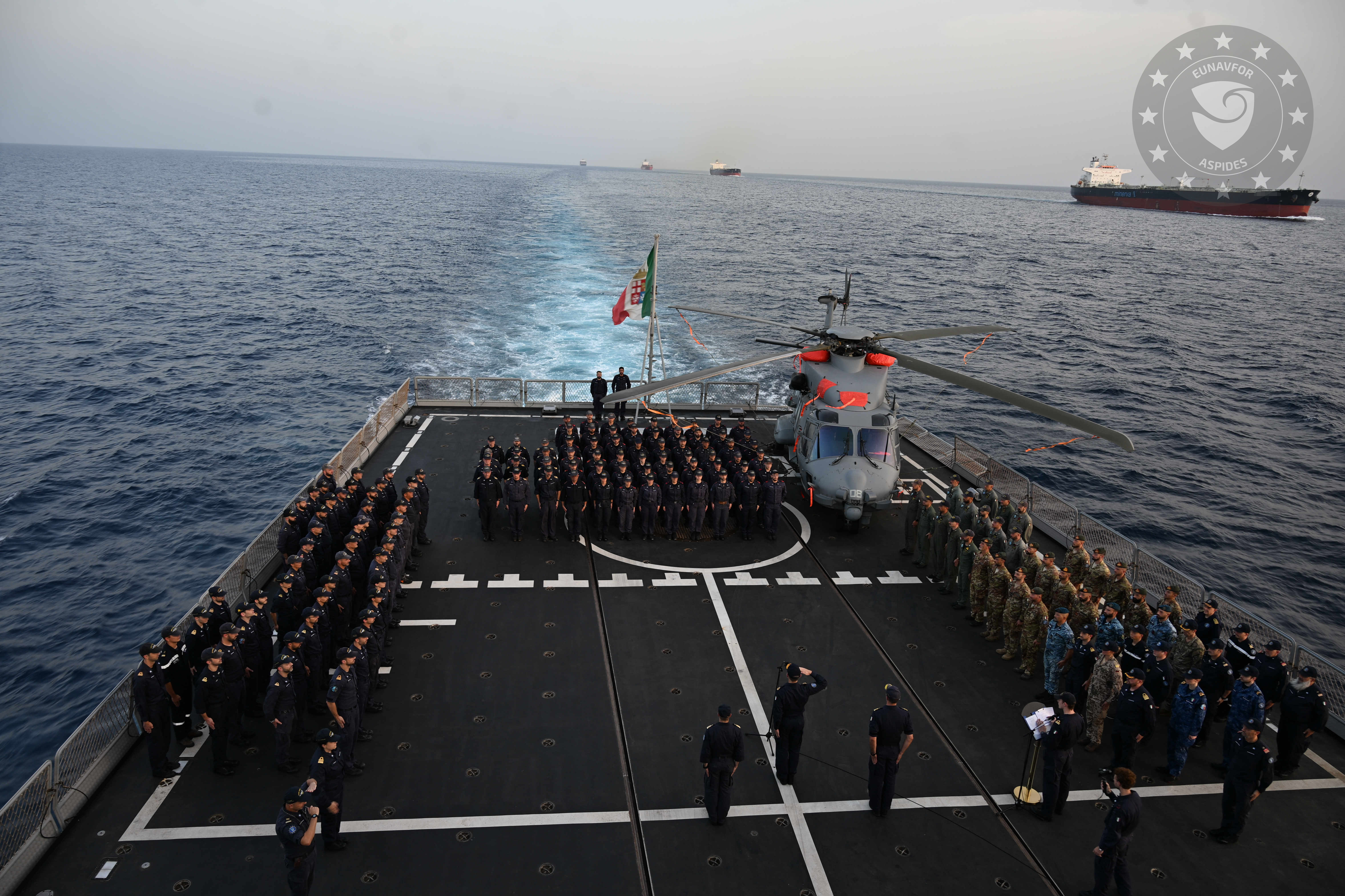 EUNAVFOR ASPIDES: Solemn Flag-Lowering Ceremony for Nave DUILIO in the Red Sea