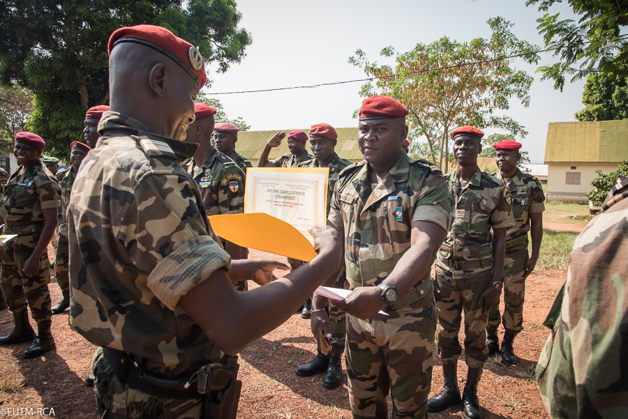 Dans le cadre de son partenariat avec le ministère de la Défense centrafricain, et en appui de la remontée en puissance et l’autonomie des Forces armées centrafricaines (FACA), l’EUTM-RCA a organisé du 04 février au 24 décembre 2019 la première formation au profit des officiers de la division d’application d’infanterie.