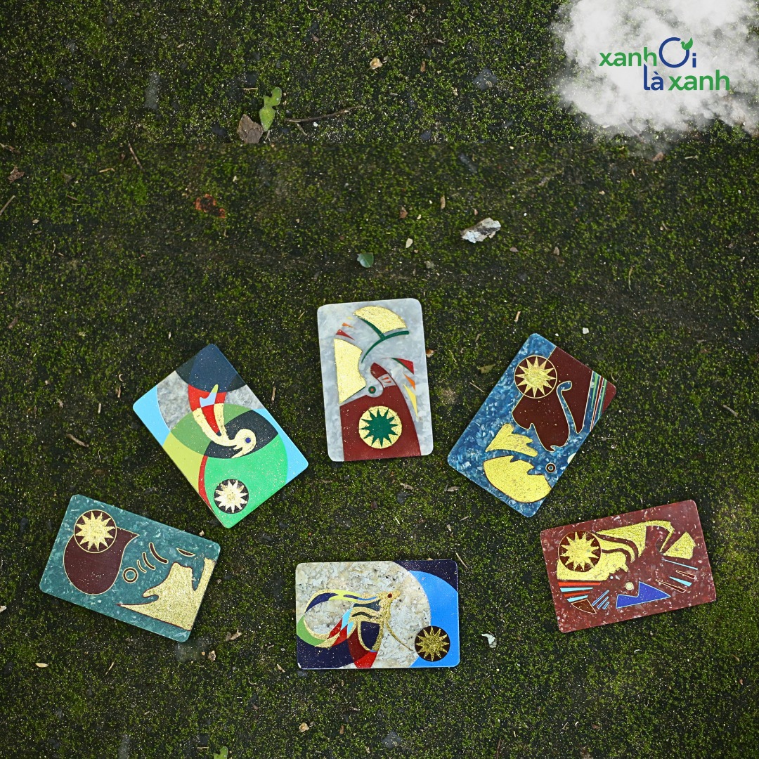 Mỗi thẻ được hoàn thiện thủ công bằng sơn mài truyền thống, kết hợp họa tiết Trống đồng Đông Sơn được khắc hoặc dát bạc/vàng, vừa hiện đại vừa tôn vinh văn hóa Việt Nam. Dự án không chỉ giảm rác thải nhựa và giấy, mà còn tạo việc làm cho cộng đồng thu gom và nghệ nhân sơn mài.
