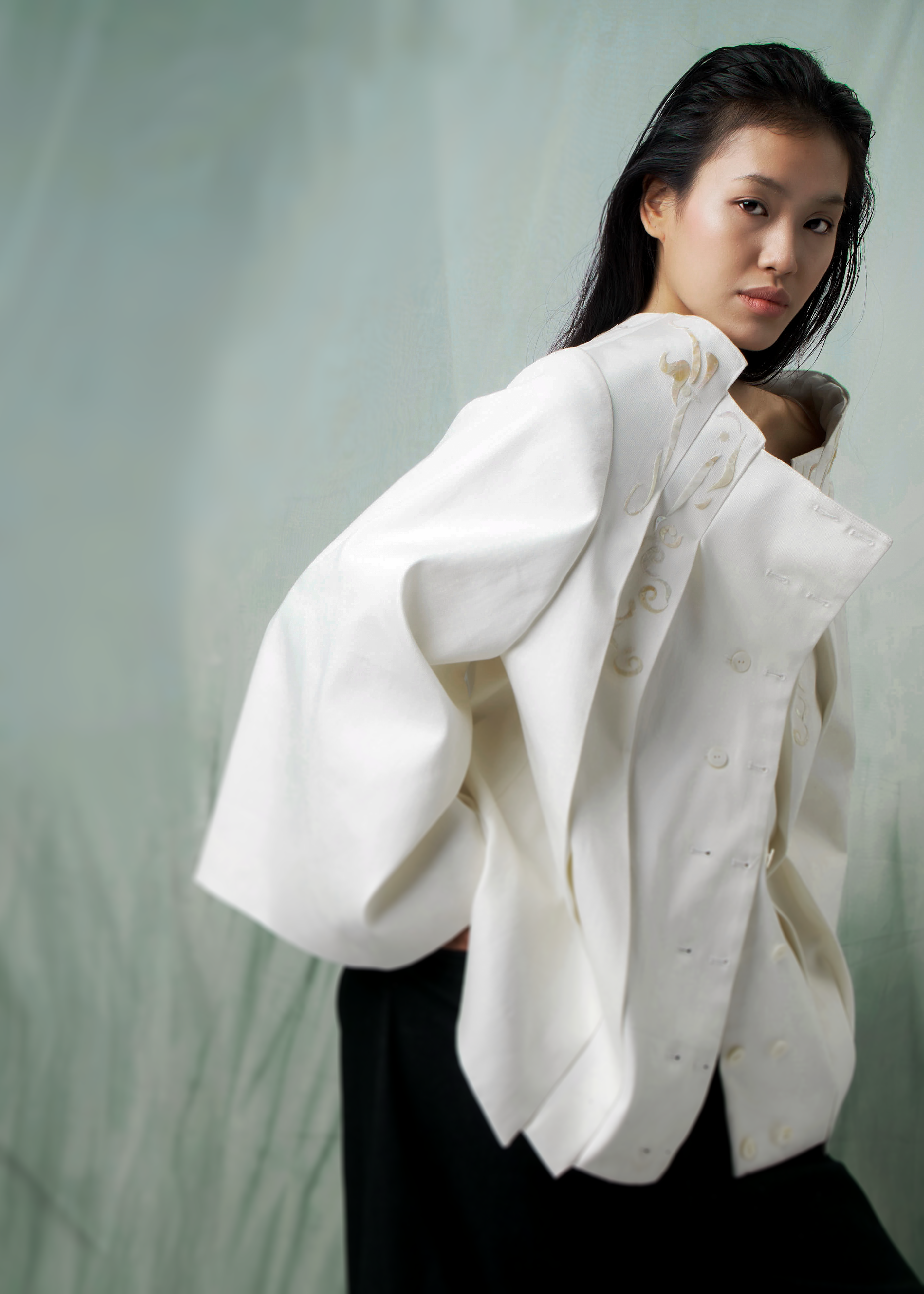 Developed in 2025 in Vietnam, the Khảm project was researched and created over six months. It utilizes pure mother-of-pearl materials sourced and processed in the traditional Chuôn Ngọ lacquer inlay village in Chương Mỹ, Hà Nội. The material is integrated into a functional and multifunctional fashion design product, characterized by durability, longevity, and the use of reusable and sustainable resources.