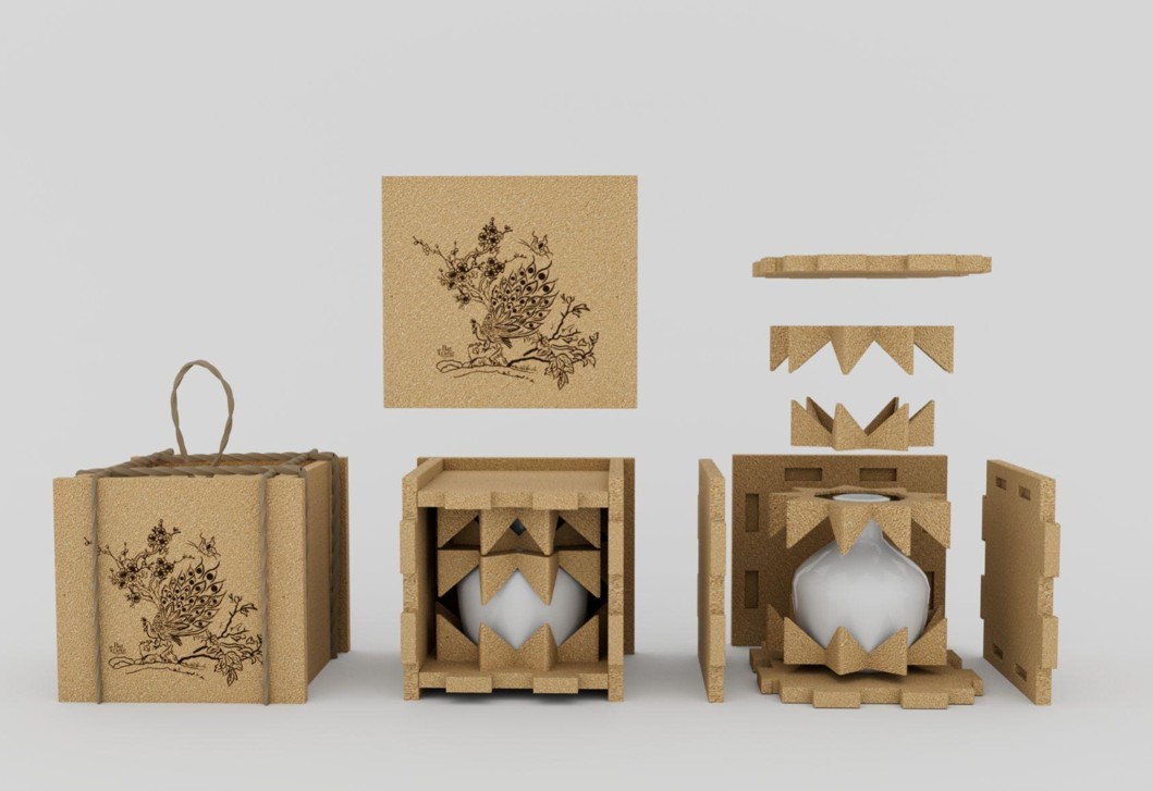 - Create biodegradable packaging from rice husks that protects ceramic products during transportation while incorporating aesthetic and local cultural elements.