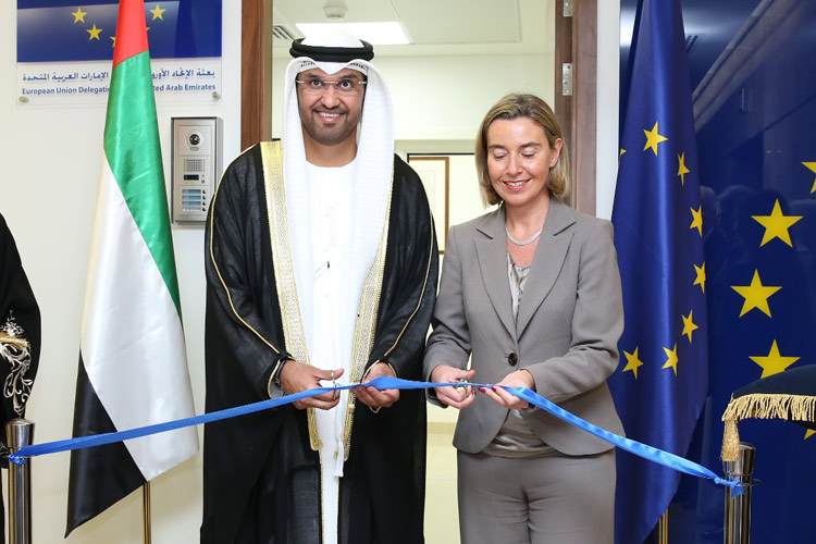 HR/VP Federica Mogherini and UAE Minister of State Dr Sultan Al Jaber Officially Inaugurate the EU Delegation to the UAE