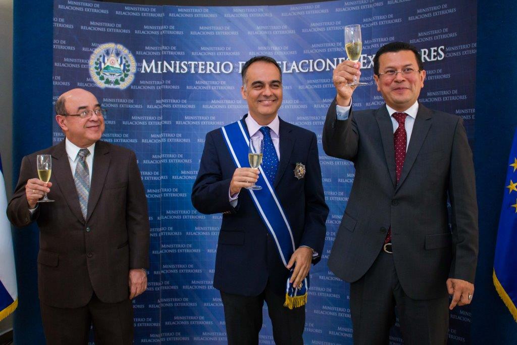 En nombre del presidente de la República, Salvador Sánchez Cerén, el ministro de Relaciones Exteriores, Hugo Martínez, condecoró con la Orden Nacional José Matías Delgado en el Grado Gran Cruz Placa de Plata al embajador de la Unión Europea, Jaume Segura Socias, en reconocimiento por sus eminentes servicios al país. La ceremonia también estuvo presidida por el Presidente de la Corte Suprema de Justicia, Dr. Óscar Armando Navas Pineda.