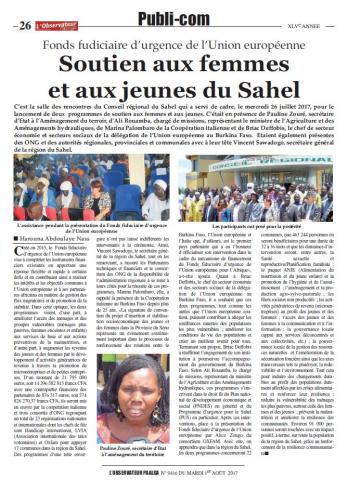 Breadcrumb EEAS Search in the EEAS archive Couverture de presse de la cérémonie par l'Observateur paalga THIS CONTENT HAS BEEN ARCHIVED PRINT Couverture de presse de la cérémonie par l'Observateur paalga 03.08.2017 Image Image Image Editorial sections Burkina Faso Africa