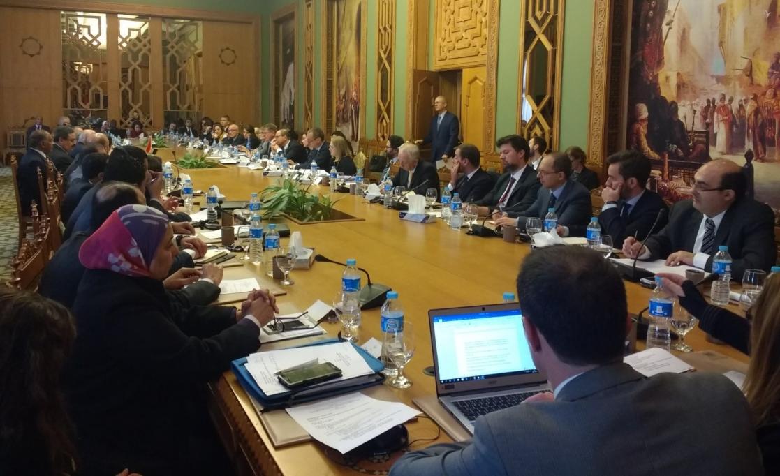 عقد الاجتماع برئاسة مشتركة بين السيد السفير/ رؤوف سعد؛ رئيس المكتب الوطني لتنفيذ اتفاقية المشاركة بوزارة الخارجية، والسيد/ كولين سيكلونا؛ القائم بأعمال مدير الشرق الأوسط وشمال أفريقيا بجهاز التمثيل الخارجي للاتحاد الأوروبي.