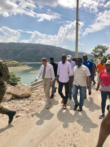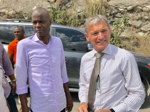 Le Président de la République Jovenel Moïse et l'ambassadeur de l'Union européenne Vincent Degert visitent les chantiers de la Route Nationale 3 financés par l'Union européenne