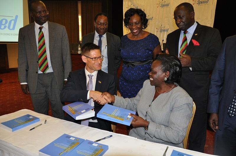 Presiding over the book launch ceremony today at the Serena Hotel in Kampala, Mr. Thomas Tiedemann, the EU acting Head of Cooperation in Uganda, said that "The European Union has for long been supporting Uganda in her pursuit of development objectives. While we may be most known for our support to agriculture, transport infrastructure, green economy and governance projects, we also have a couple of gems in other sectors: and SPEED is such a gem". Speaking on behalf also of the EU Members States, he confirmed the EU commitment to playing its role in international efforts to make UHC attainable in Uganda. "This book launch, which takes place as we prepare to celebrate Europe Day next week, marks an important mile-stone in rallying stakeholder efforts towards advancement of the UHC agenda not only in Uganda but also in many other developing nations" he stated.