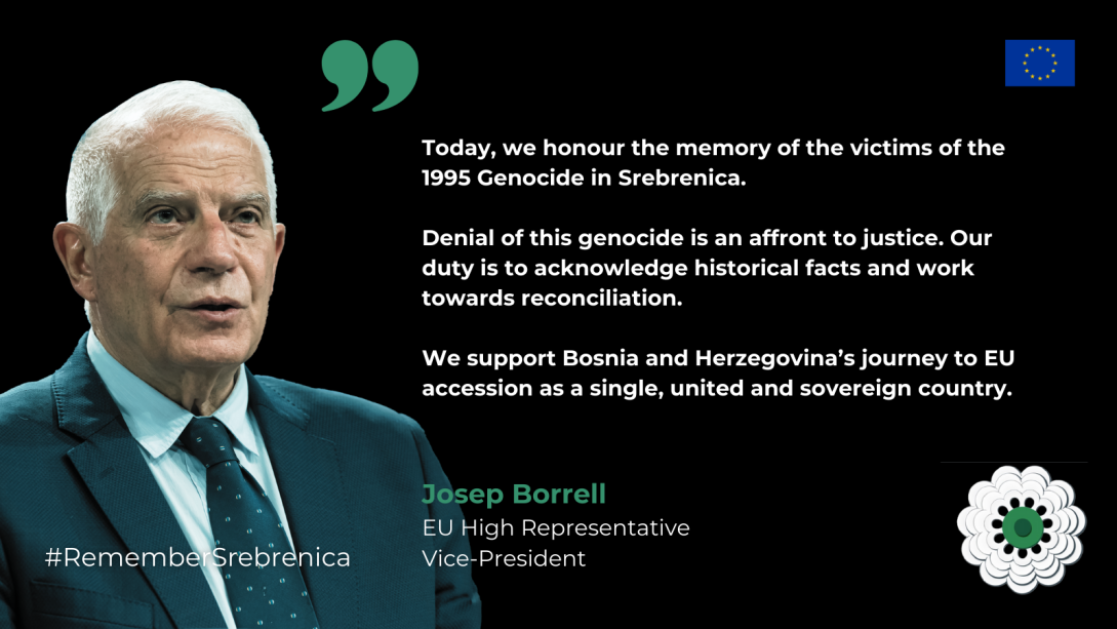 High Representative Borrell, in his op-ed entitled “Remembering Srebrenica: Confronting History to Build Peace” which was widely published across the Western Balkan region, emphasized that we need to remember but also to act.