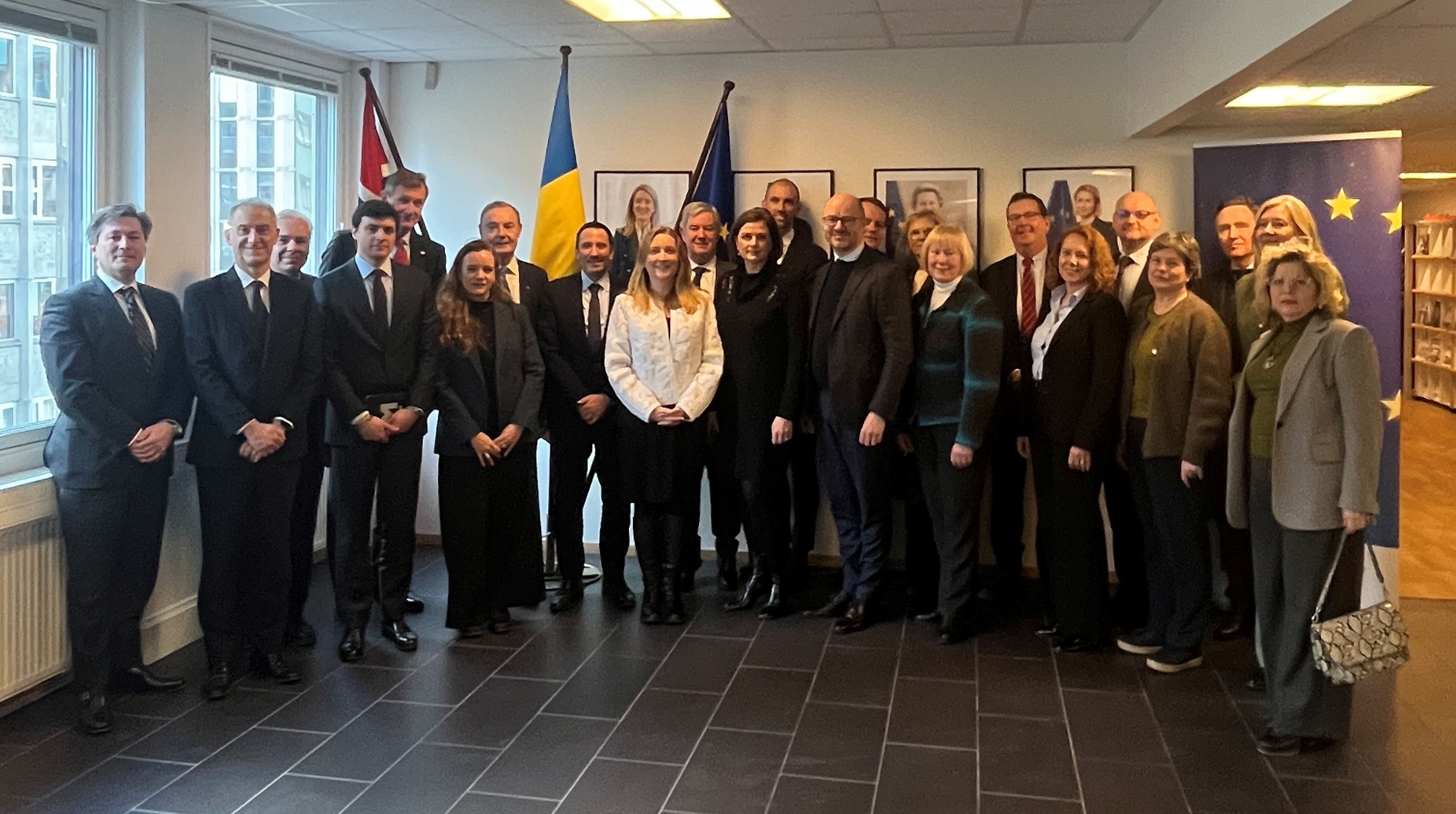 Besøket startet med et morgenmøte i Utenriksdepartementet, med statssekretær Eivind Vad Petersson. Norge slutter tett opp om EUs sanksjonspolitikk, og EU og Norge står samlet i sin støtte til Ukraina.