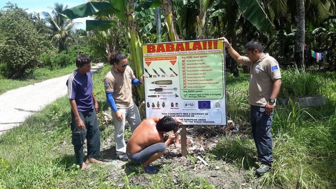 Desde 2012, a UE tem apoiado ações de educação sobre os riscos e de deteção e eliminação de minas e engenhos não detonados na ilha de Mindanau para ajudar as partes no conflito a seguir juntas o caminho da paz. O acordo global de paz, assinado entre a Frente Moro de Libertação Islâmica e o governo das Filipinas em 2014, foi um marco importante. A sua aplicação está em curso e exige numerosos pequenos passos por todas as partes envolvidas.