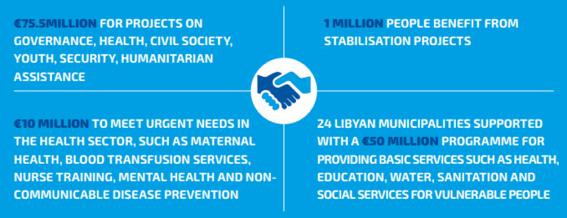 In addition to that, the EU provided food assistance and other essential support to meet the most pressing humanitarian needs of vulnerable Libyans displaced by the conflict.