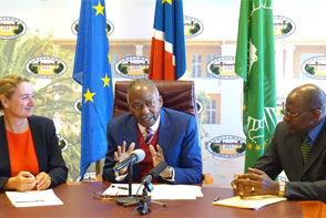 Joint Press Conference on the main outcomes of the 31st Session of the ACP-EU Joint Parliamentary Assembly (JPA) which ended yesterday on the 15th of June. EU Ambassador to Namibia, Jana Hybaskova, Speaker of the National Assembly, Professor Peter Katjavivi and Namibia's Ambassador Kaire Mbuende accredited to the EU, ACP, the Netherlands, Belgium and Luxembourg held a Press Conference on the JPA. The Speaker of the National Assembly thanked all partners and organizations who contributed to making this event a resounding success. He added that the JPA served as a platform for intensive exchange of views between ACP and EU Parlementarians on a wide range of critical topics, such as: the common management of ACP-EU migration, ending impunity for rape and violence against women and children in armed conflics, strengthening governance and local participation levels as well as promoting decentralization. Delegates furthermore had the opportunity to elaborate on the partnership POst-Cotonou in order to ensure that it reflects current challenges and opportunities.